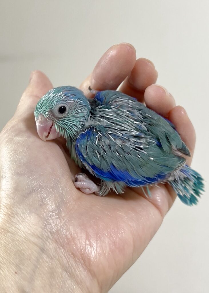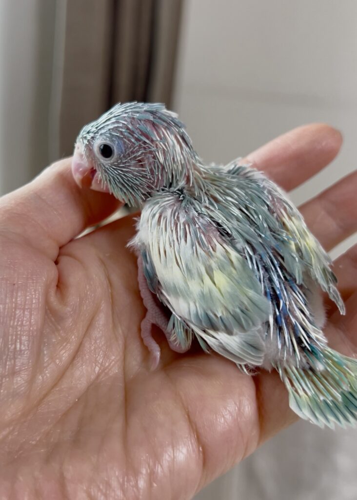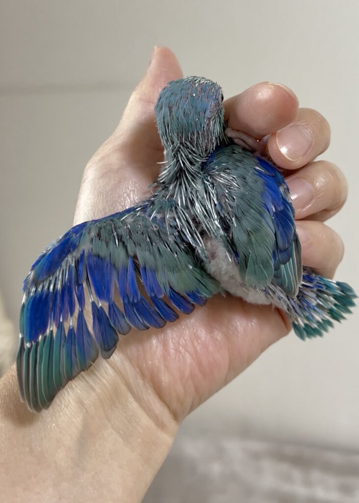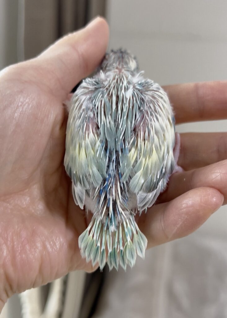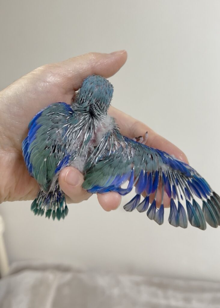 腰のブルーもキレイ、アイシャドウも出てきそう。男の子かな?パイドだと分かりにくいんです。